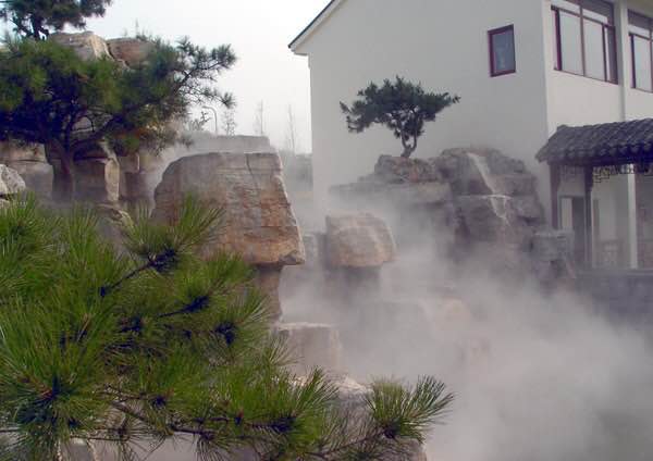 應用于園林景觀效果,人工造霧以改善空氣質量,美化環(huán)境為依托,以景觀、保濕、防塵、降溫、造景為目的,在自然園林、環(huán)境景觀方面應用廣泛,如景區(qū)、廣場、公園、綠化工程、舞臺、連廊、休息亭、室內外餐廳等各領域。當微風拂過,霧形上下騰涌,霧濃似云海般飄渺,云起云聚,霧淡如輕紗撫面,溫和柔美。人們不僅可以在遠處觀賞,體會那若穩(wěn)若現(xiàn)的神秘之感,更可置身于的茫茫霧海中,呼吸其濕潤新鮮的空氣,神奇之處令人意趣無窮。